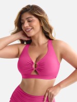 Wide shoulder straps, drawstring, built-in shaping mesh, metal ring embellishment, deep V-neck, removable bra pads
